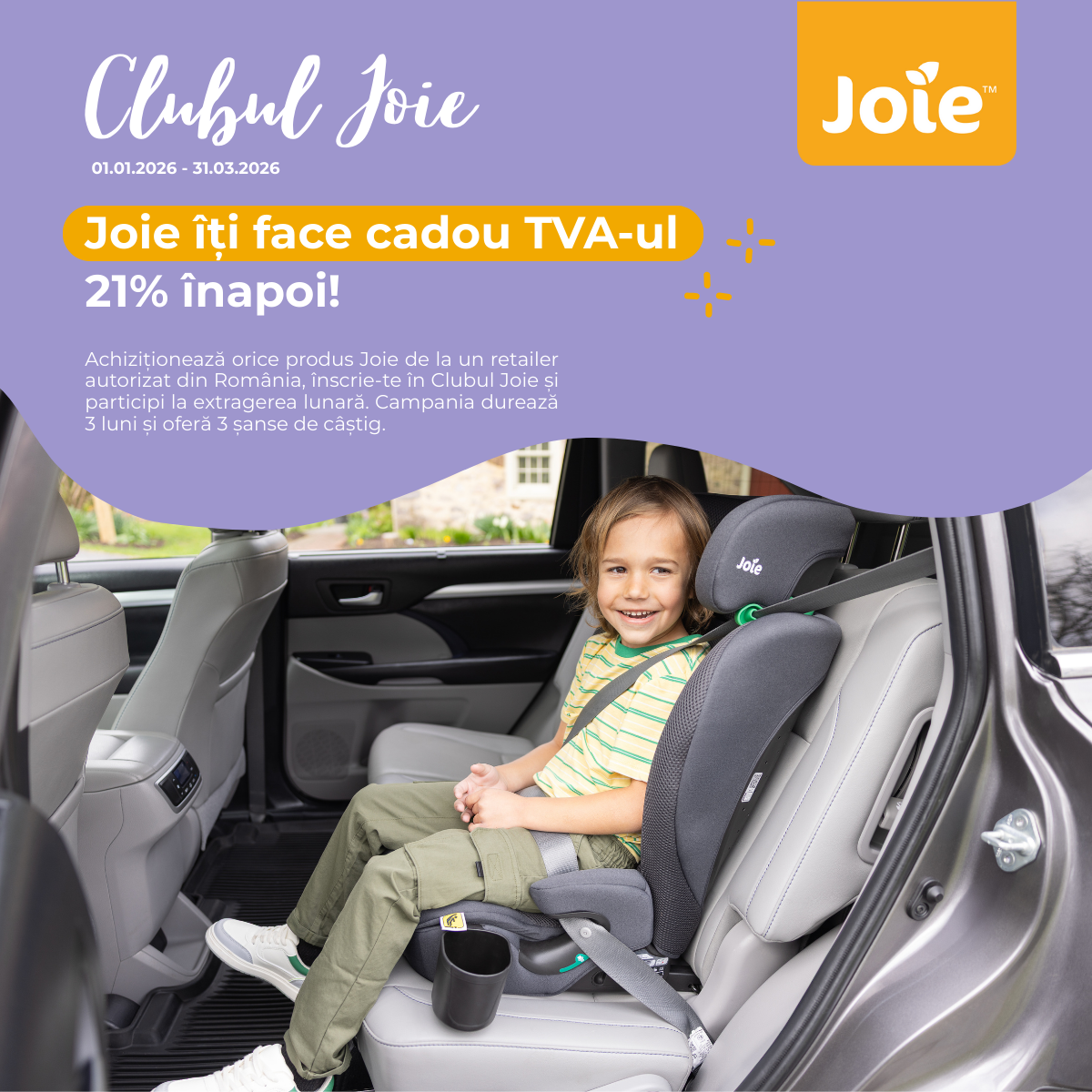 Clubul Joie este genul de program care completeaza perfect o alegere buna facuta pentru copilul tau. Cand cumperi un produs esential – fie ca vorbim despre un scaun auto, un carucior sau un accesoriu important pentru rutina zilnica – nu cumperi doar “un produs”, ci cumperi siguranta, confort si incredere.