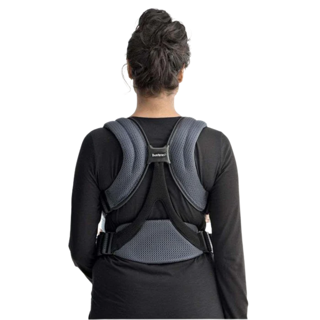 - Confort sporit pentru parinte si copil datorita suportului lombar, centurii late si bretelelor captusite.