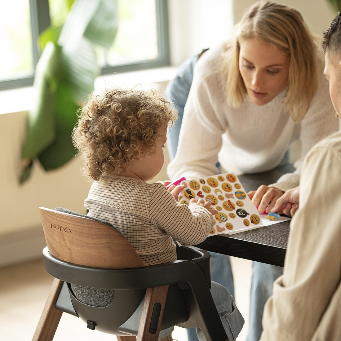 BRYN este gandit pentru a oferi o experienta cat mai placuta la masa. Are un suport pentru picioare reglabil in trei pozitii, care se adapteaza natural ritmului de crestere a picioruselor copilului. Pernita din tweed cu rol de insert adauga o textura eleganta si un plus de confort, fiind prevazuta cu o suprafata antiderapanta care o mentine ferm in pozitie. Usor de indepartat si lavabila la masina, pernita face ca intretinerea scaunului sa fie la fel de simpla ca utilizarea de zi cu zi.